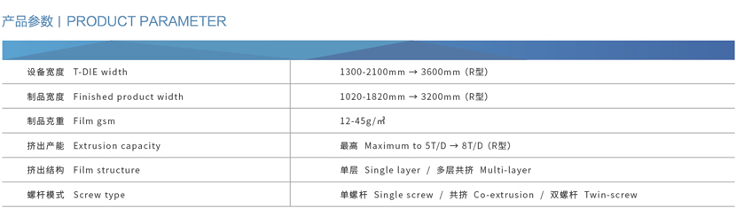 設(shè)備按制品結(jié)構(gòu)所需可選擇單層/多層共擠工藝,還可裝備原料自動(dòng)計(jì)量配料系統(tǒng),電暈系統(tǒng)、瑕疵檢測(cè)、在線測(cè)厚、全自動(dòng)調(diào)節(jié)模具、二次打孔、在線分切、卸卷稱重、遠(yuǎn)程維保系統(tǒng)等功能件。